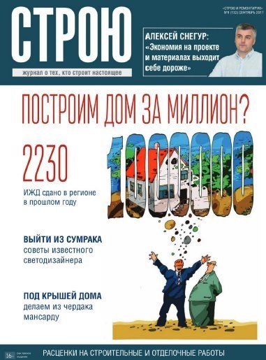 Полезный журнал-каталог о строительстве, ремонте, отделке и декорировании - для тех, кто строит свой дом, ремонтирует квартиру. Материалы журнала Строю и ремонтирую обращены не только к профессиональным строительным фирмам, строителям, декораторам и дизайнерам, но и всем интересующимся читателям, которым интересны теория и практика современной архитектуры, строительства, которые можно применить на практике в своем доме.